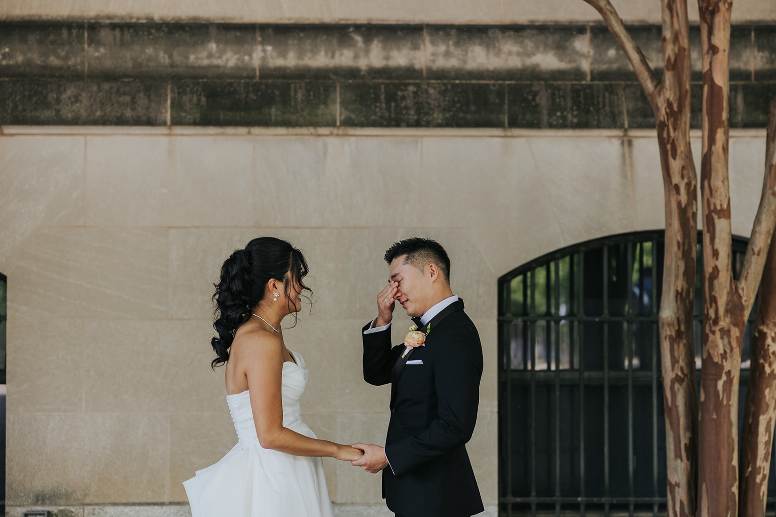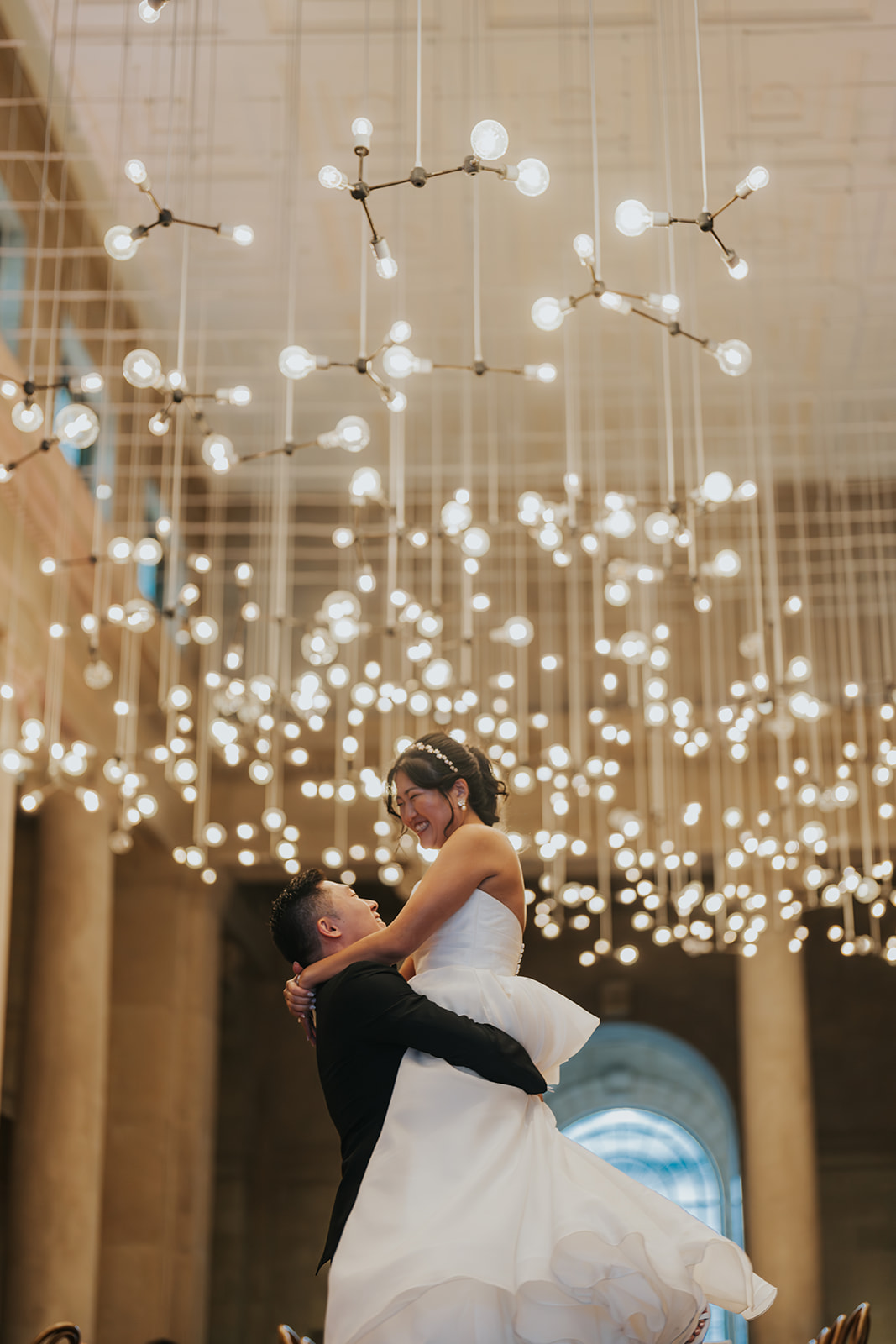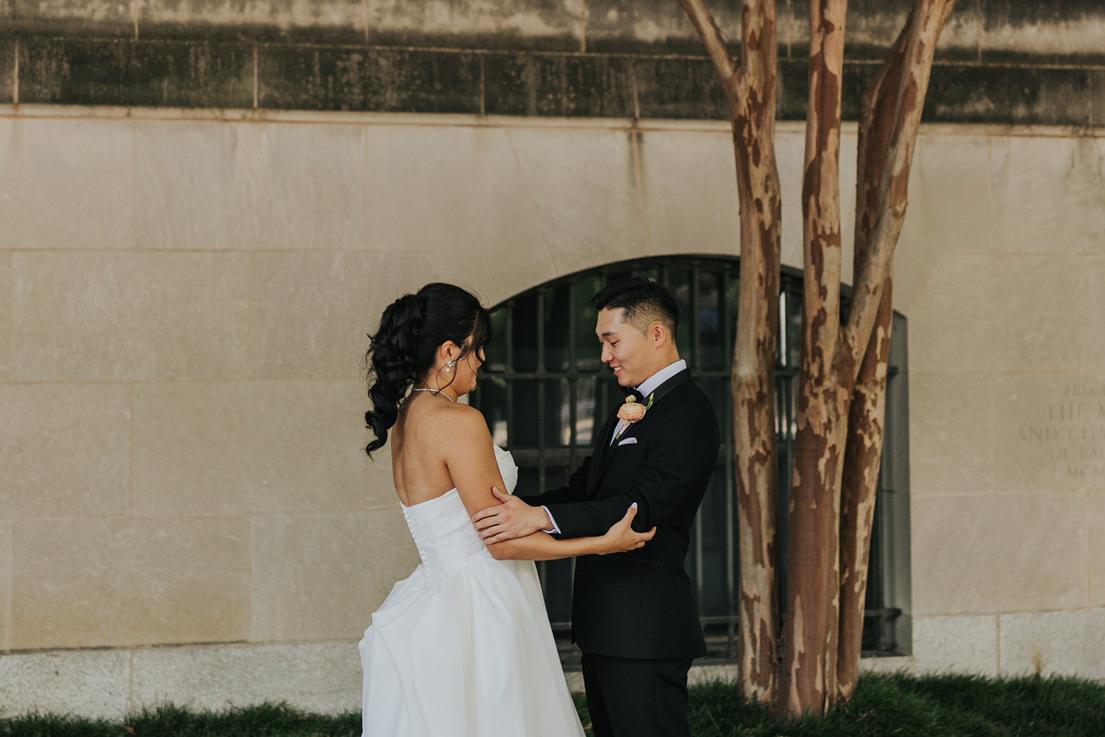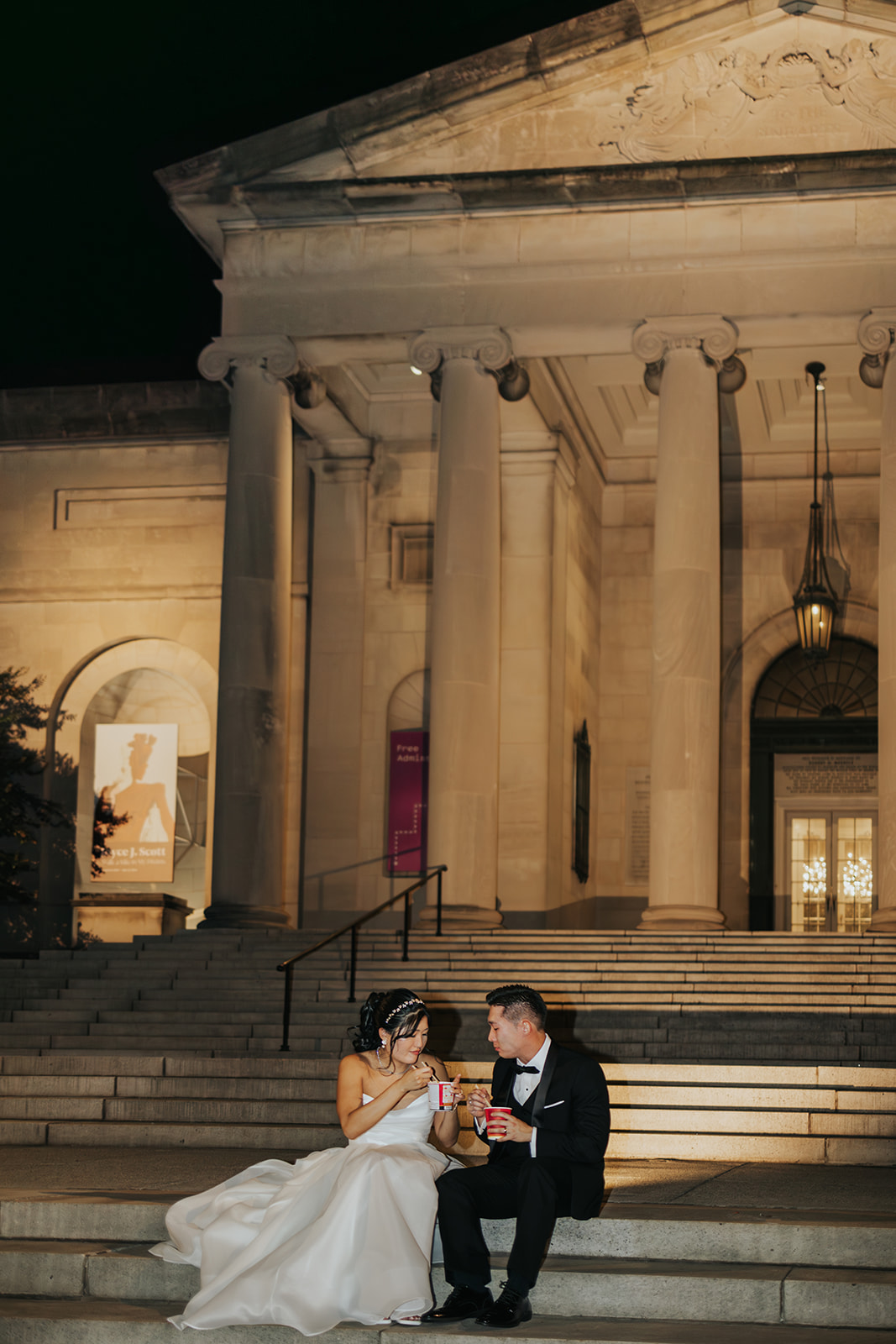 Suji & Kevin had so many lovely details in their elegant Baltimore Museum of Art wedding celebration. The soft color palette brought warmth throughout the marble space, as we used special touches like miss-matching colored glassware, mixed textures in the linens, and voluminous arrangements of summer-pastel flowers.