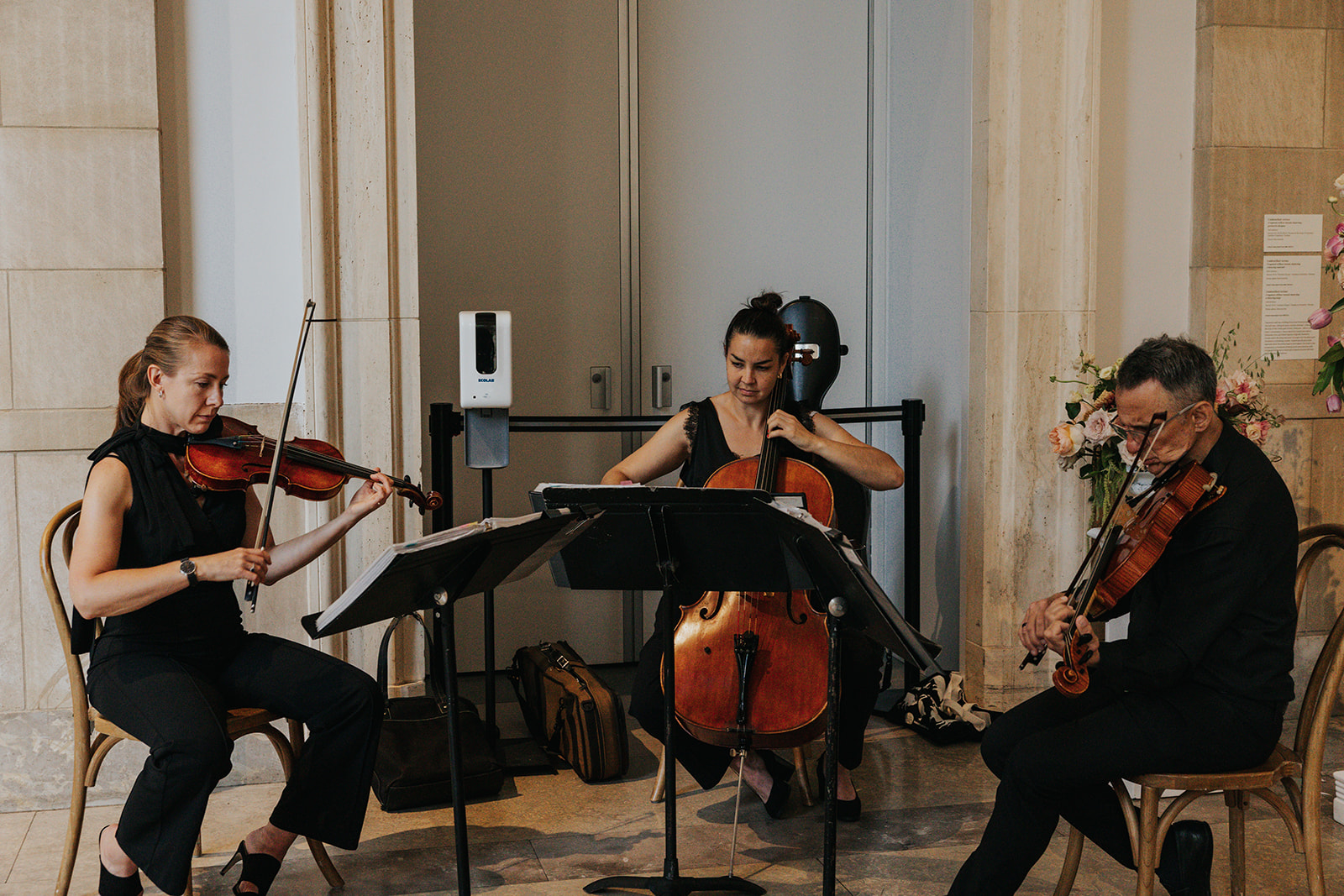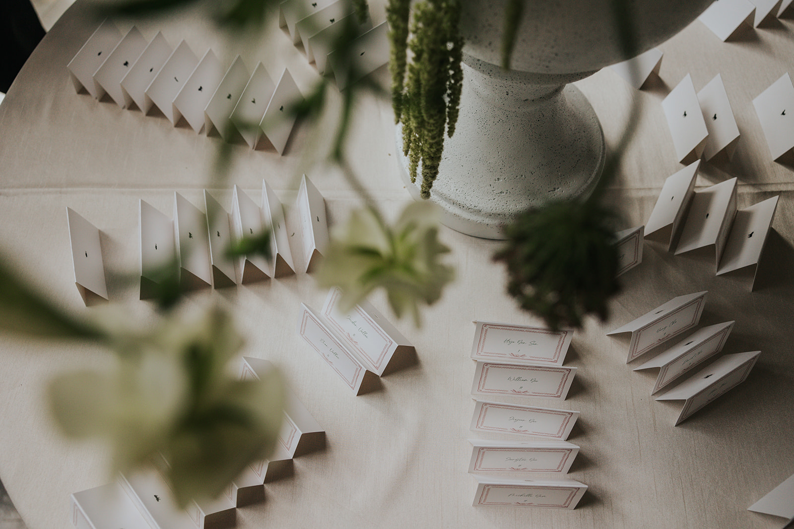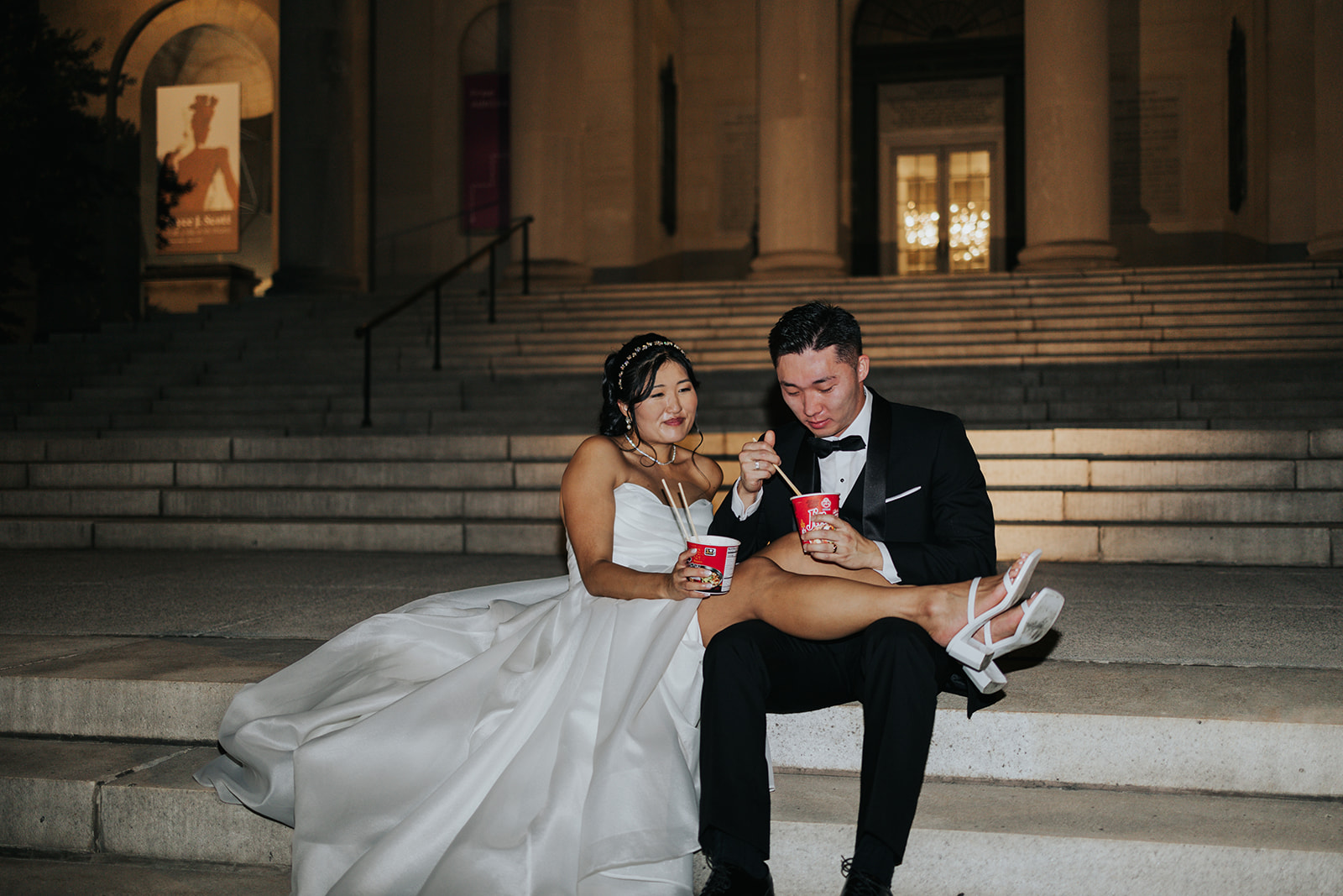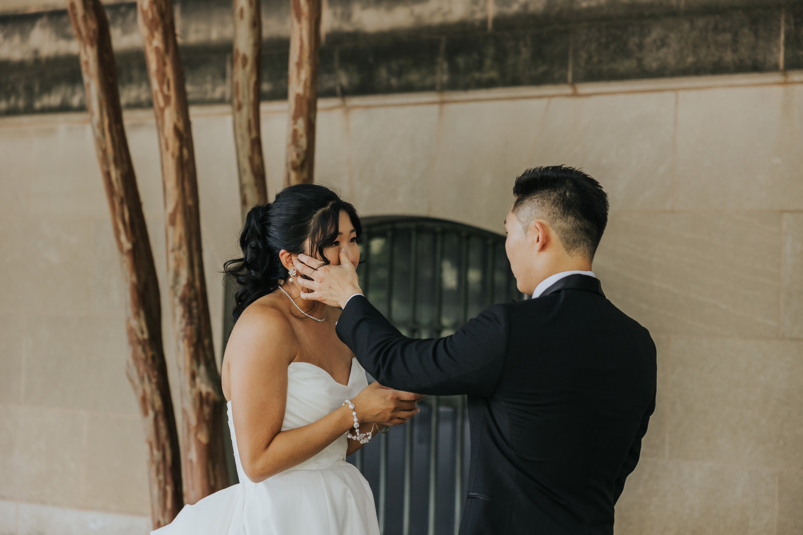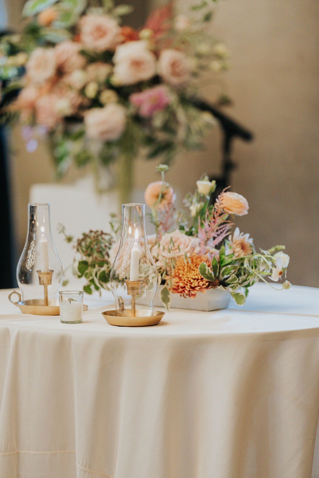 Suji & Kevin had so many lovely details in their elegant Baltimore Museum of Art wedding celebration. The soft color palette brought warmth throughout the marble space, as we used special touches like miss-matching colored glassware, mixed textures in the linens, and voluminous arrangements of summer-pastel flowers.