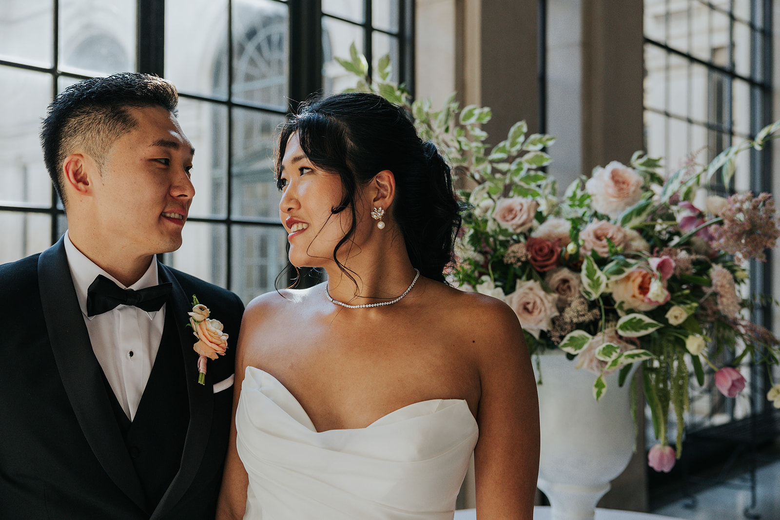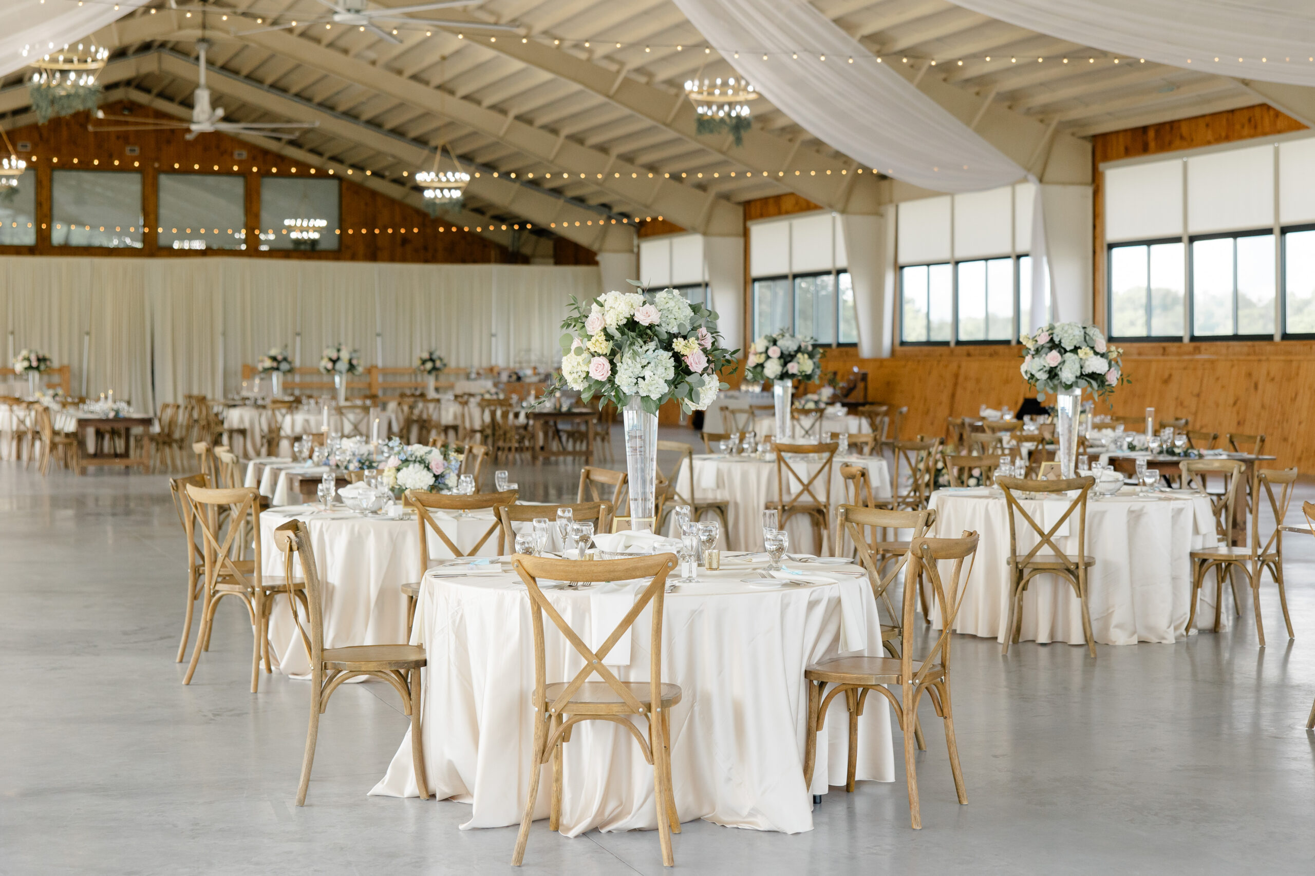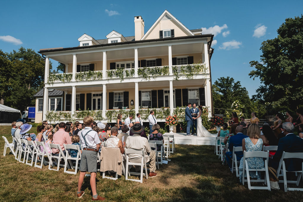 Jen and Ryan were wed at the Greenspring Valley Country Club on a perfect day in May. The evening got chilly, so it’s a good thing they provided pashminas for every lady. Jen had a specific vision of all perfectly white flowers under a clear top tent, flooded with tiny lights overhead. The stark white florals were complemented by preppy stripes of the navy blue and accents of green.