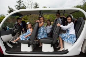 One of Charm Cars’ 6-seater golf carts – photo from a different event (photo credit: Natalie Lane Photography)